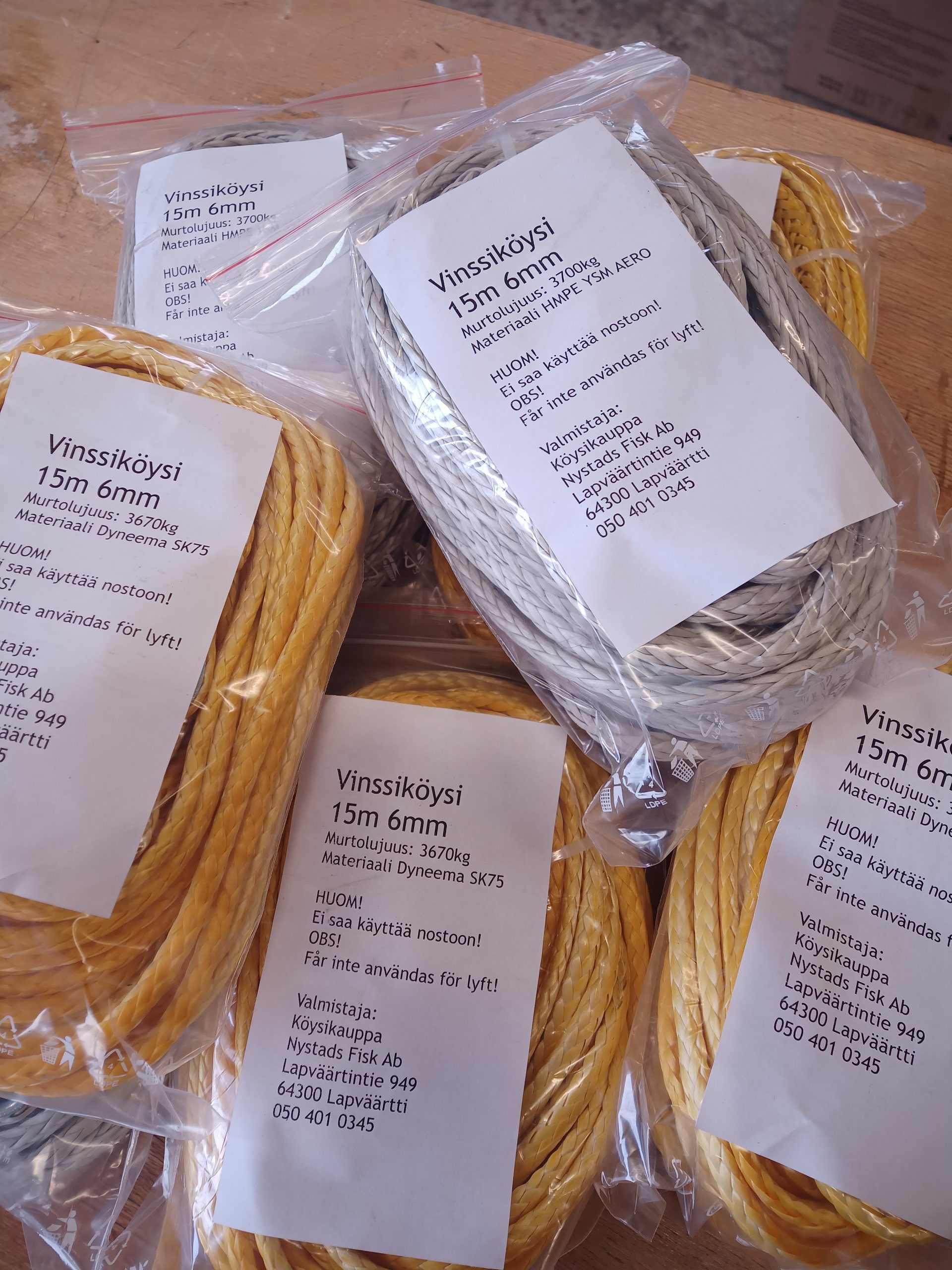 Tammikuu vaihtui helmikuuksi ja kunnon talvi näyttää rantautuneen Suomenkin rannikolle. Vinssiköysien tilausmäärät ovat kasvussa, mikä on erittäin hieno asia. Valmistamani mönkijöiden vinssiköydet ovat korkealaatuisia HMPE- ja Dyneema -kuidusta valmistettuja, kaikille köysille löytyy sertifikaatti materiaalin osalta.