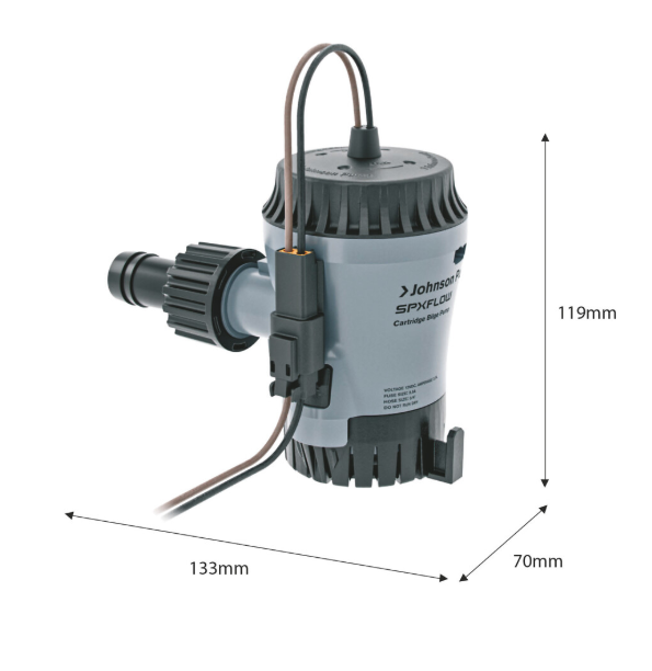 • Moottorin pikavaihtoliitännän ansiosta moottorin vaihto tai kapasiteetin lisääminen on nopeaa ja helppoa. Alan ensimmäinen ja ainoa pilssipumppu, jonka johtosarja ei vaadi johtojen katkaisua ja liittämistä.