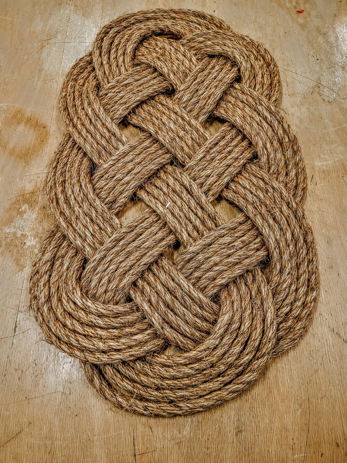 Köysimatto, yksi tunnetuimmista perinteisistä merimiestöistä. Matto tehty ekologisesta Manilla -köydestä. Maton koko n. 55cm x 35cm. Matto valmistettu käsityönä pajallani Kristiinankaupungissa.