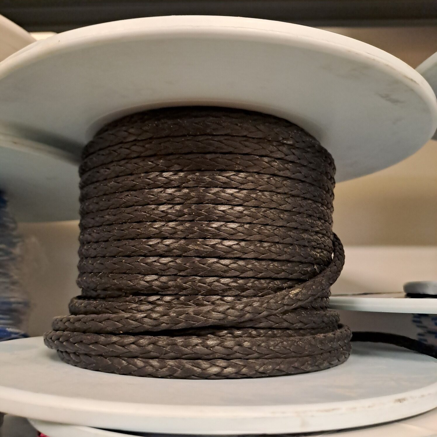 D-Pro Dyneemaköysi 6mm. Paljas Dyneemaköysi esimerkiksi barduunoihin ja soft sakkeleiden tekoon. 4mm köyden murtolujuus 1300kg, paino 7g/m, venymä 30% kuormalla alle 1%.