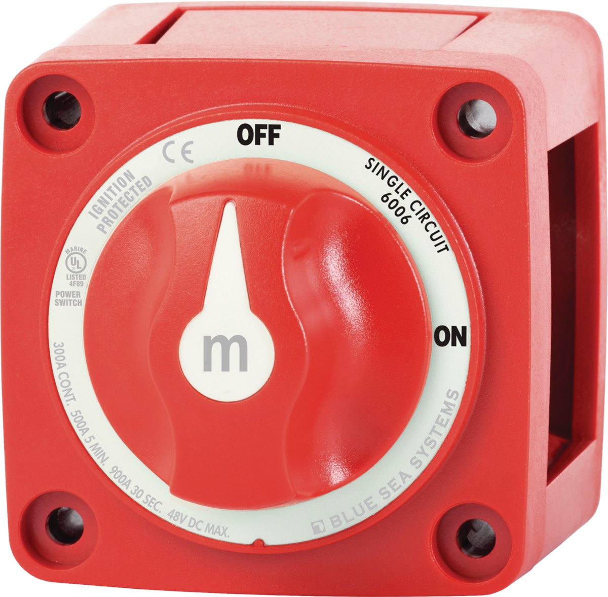 Kompakti päävirtakytkin pieniin järjestelmiin. Kytkee yhden akkupankin veneen sähköjärjestelmään. Kipinösuojattu rakenne on turvallinen myös bensiinikäyttöisissä veneissä.